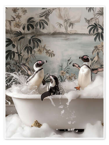 Posterlounge   Tavlor   Badrum   Poster Penguin Splash Party